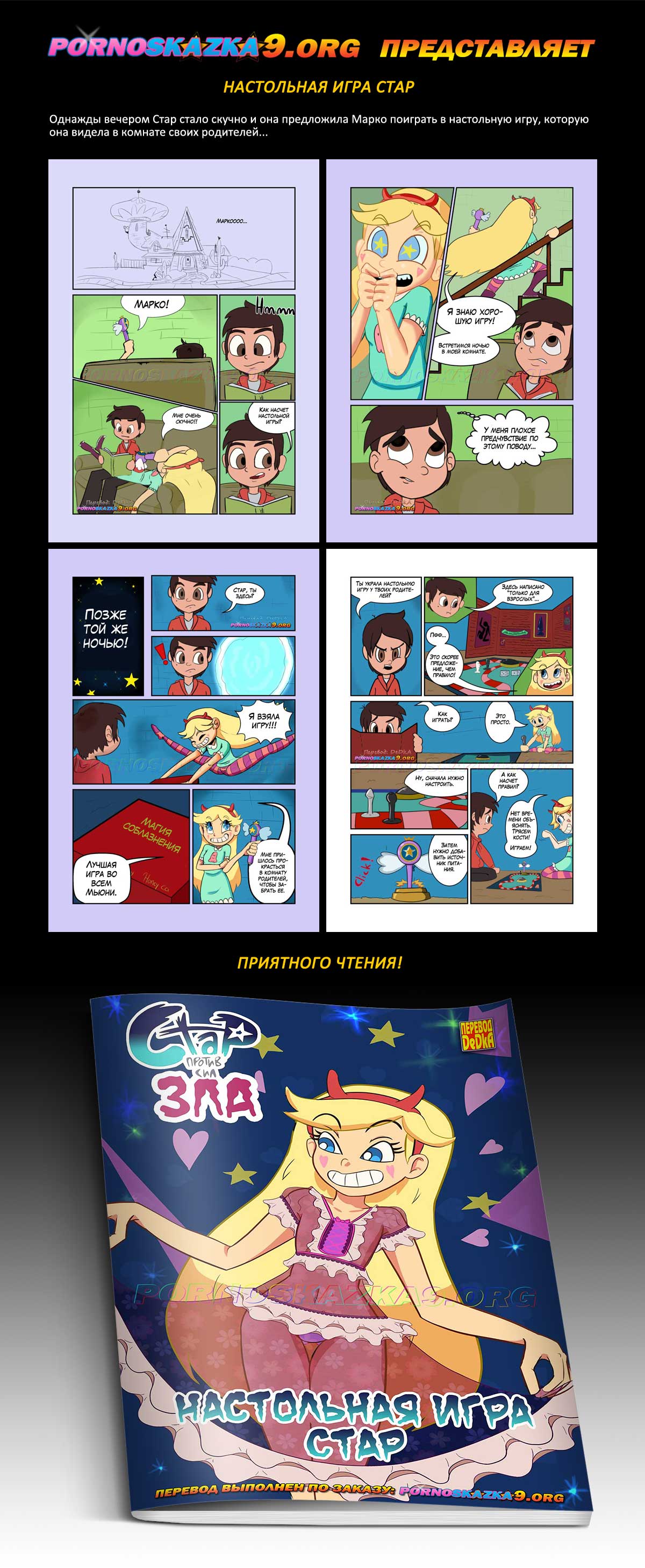Порно комикс «Настольная игра Стар. Стар против сил зла.» Однажды вечером Стар стало скучно и она предложила Марко поиграть в настольную игру, которую она видела в комнате своих родителей…